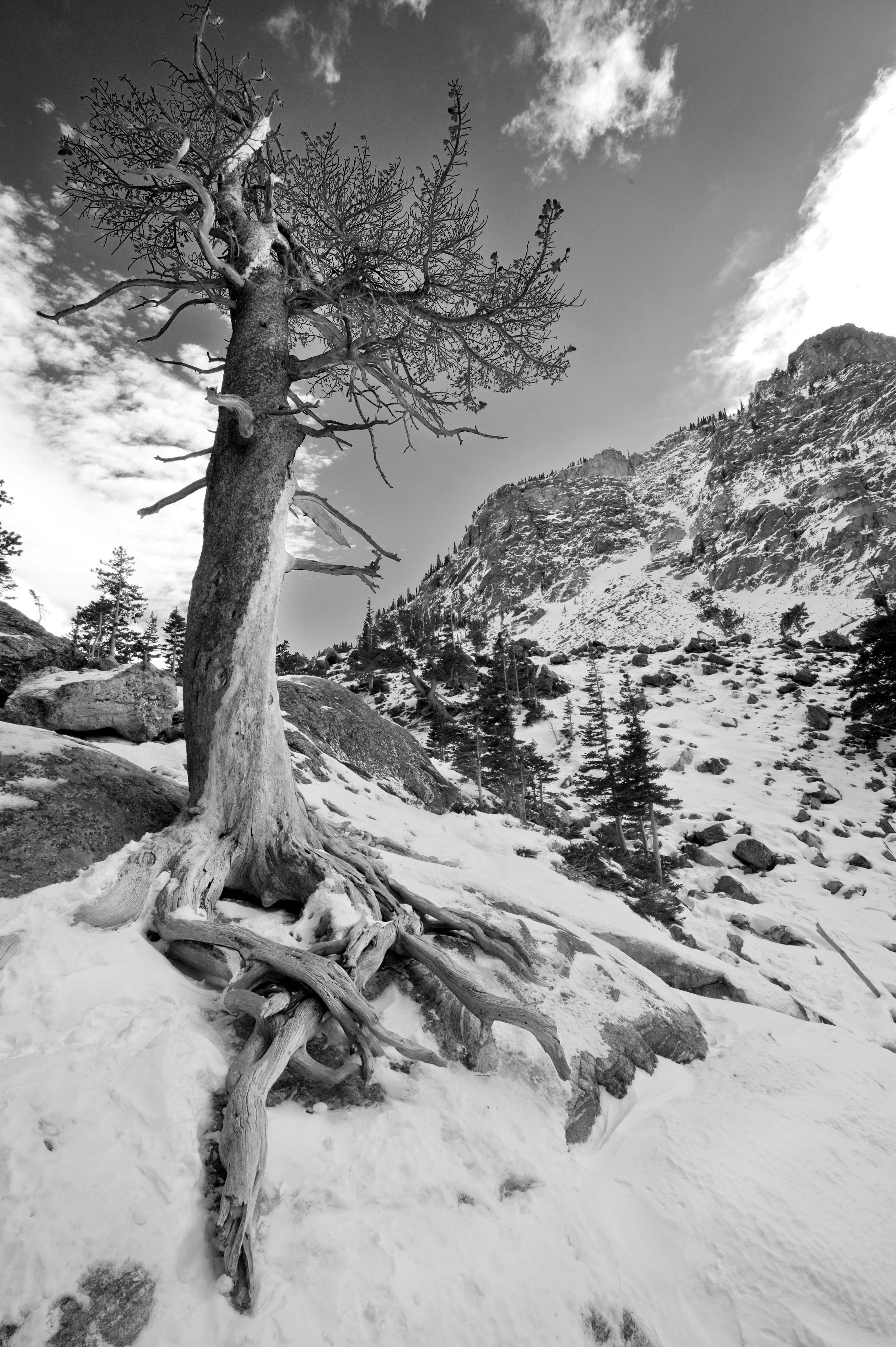 Looking up towards Hallets Peak in Rocky Mountain National Park on a fine winter day.