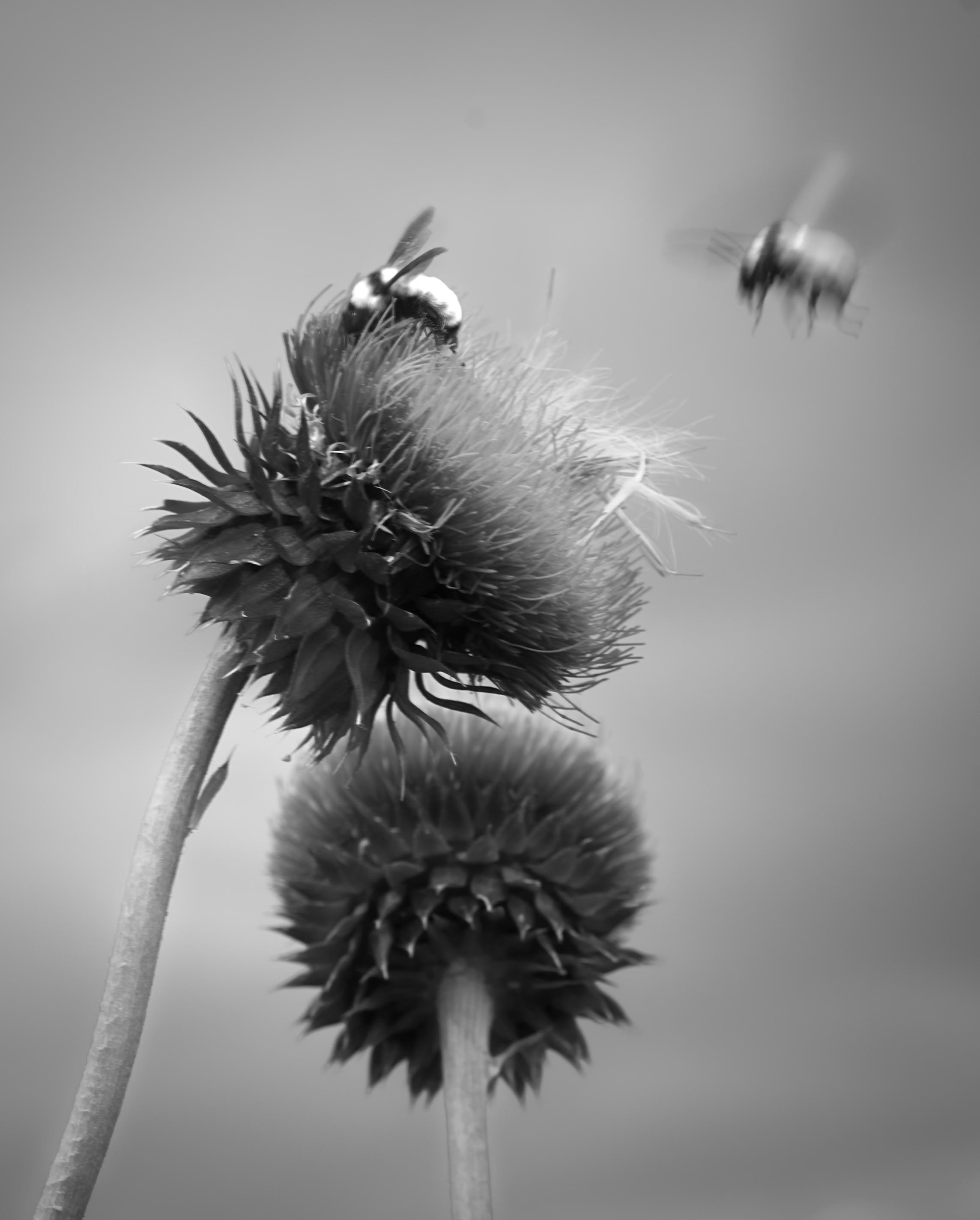 Bees still buzzing but the thistle has gone to seed. Sometimes summer seems a blur. Fall is in the air.