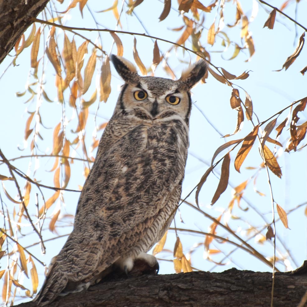 Wow, Mike! This is an incredible shot!! So perfectly framed where the yellow leaves match his/her eyes, and the tree bark blending with the feathers. It is so clear and crisp. I see the crows harassing the red-tails a lot, but haven’t been led to an owl by them. It is so rare to encounter them in the day. I will have to watch out for that. Thanks! I hope you had a nice Thanksgiving Day.