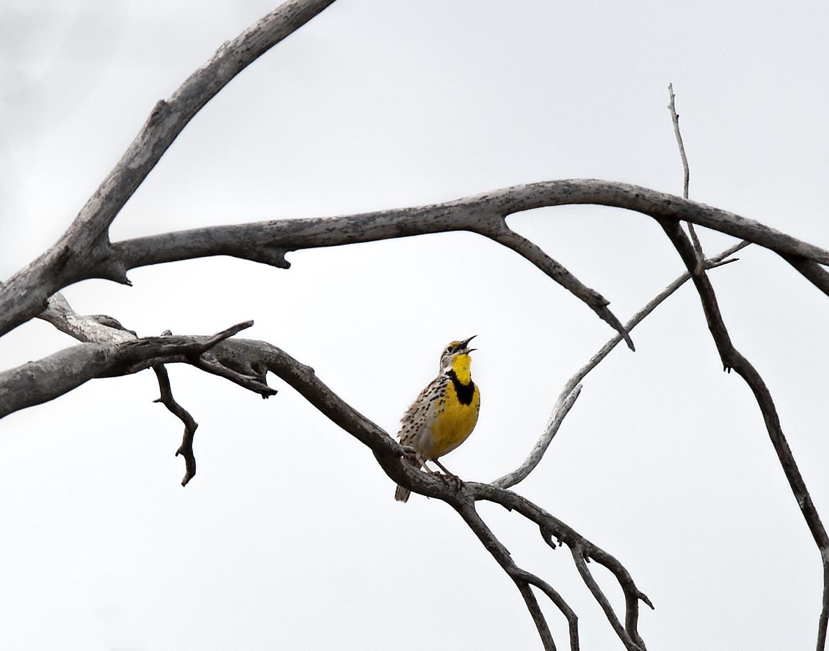 Even on the cloudiest of days a Meadowlark sings it song. Rocky Mountain Arsenal National Wildlife Refuge Denver, CO.
