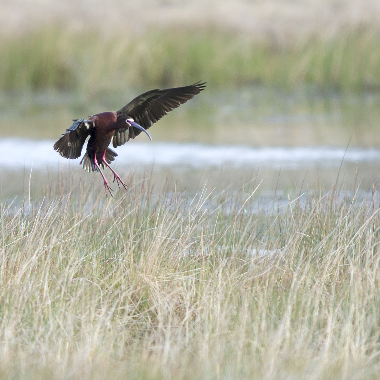 A White Faced Ibis sticks the landing in a flooded field near Walden, CO.