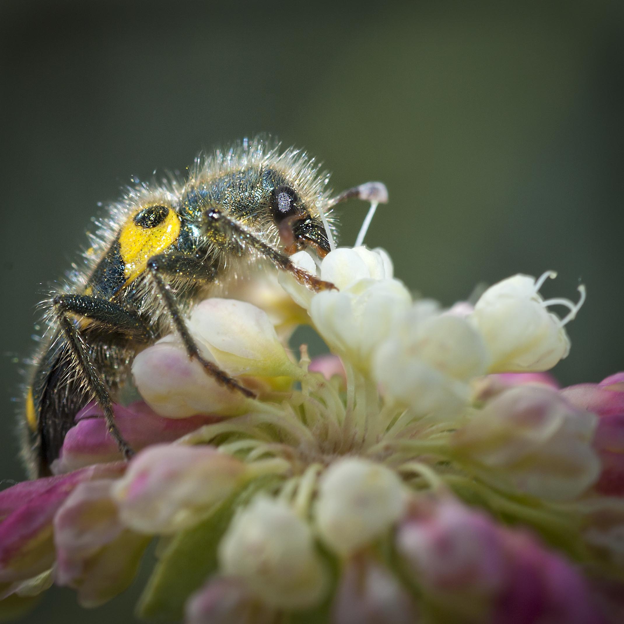 Bugs and flowers go hand and hand. This little black and yellow guy was probing for nectar while doing a little polinating at the same time. One of the things that is fun about macro photography is getting a glimpse into a world you really can not see with the naked eye and all too often we forget that just because we can not see something it does not matter.