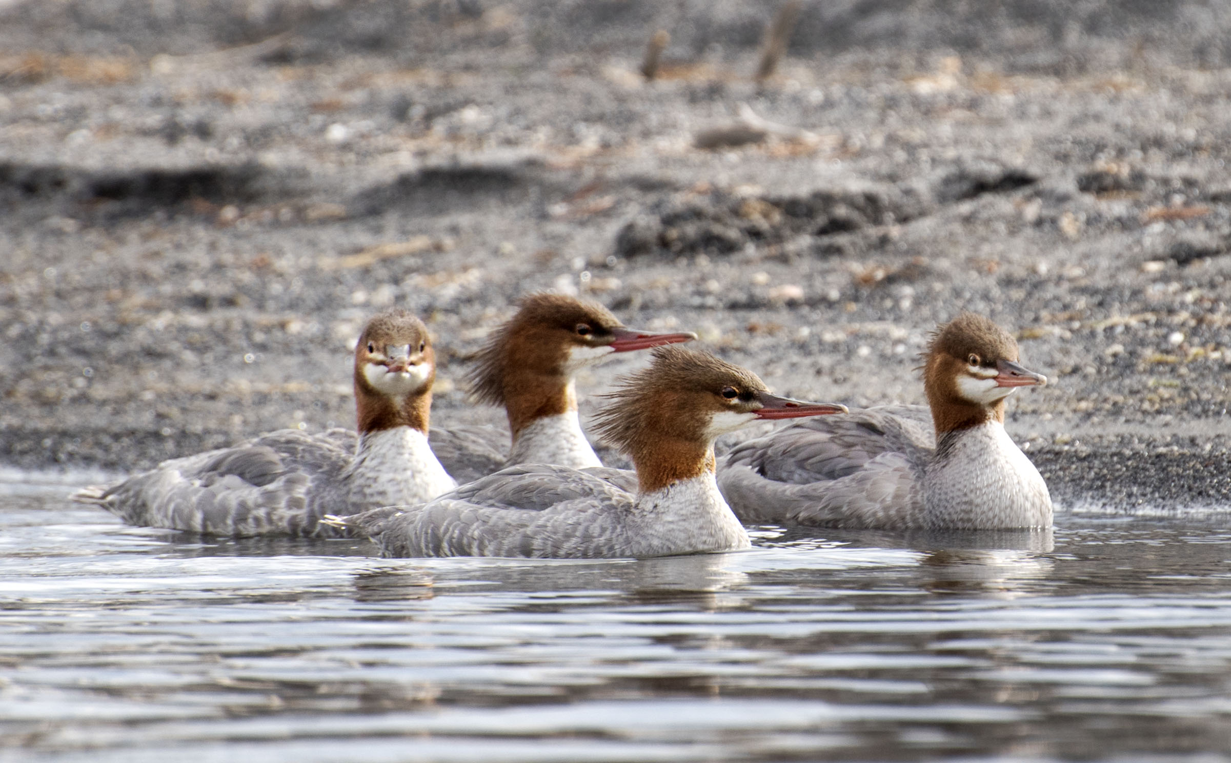 It seems like no matter how quietly I try to kayak by and photograph Mergansers there is always one who seem to catch on to the action. Two different groups on two different days same result.