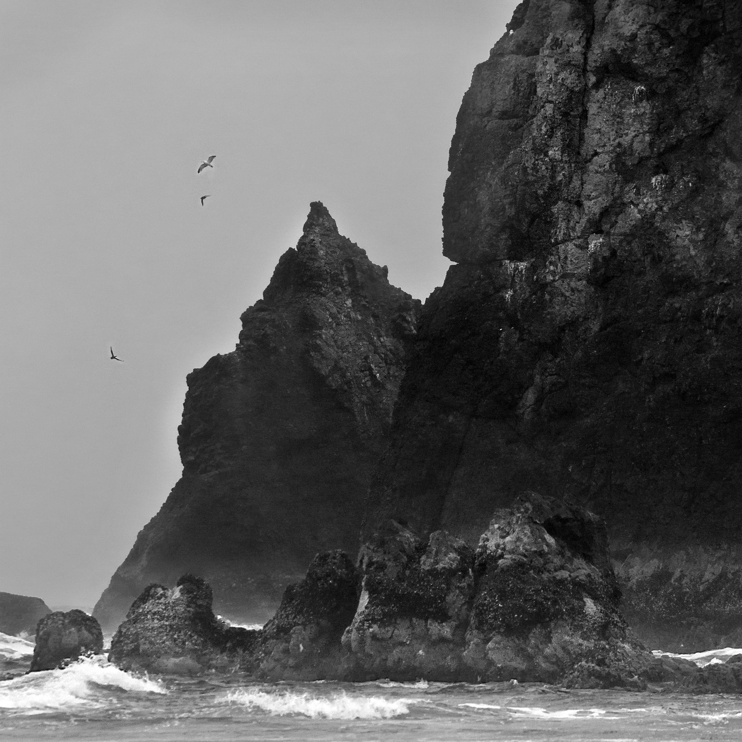 Three gulls take to the wing and seem right at home on a stormy rainy afternoon off the Oregon Coast.