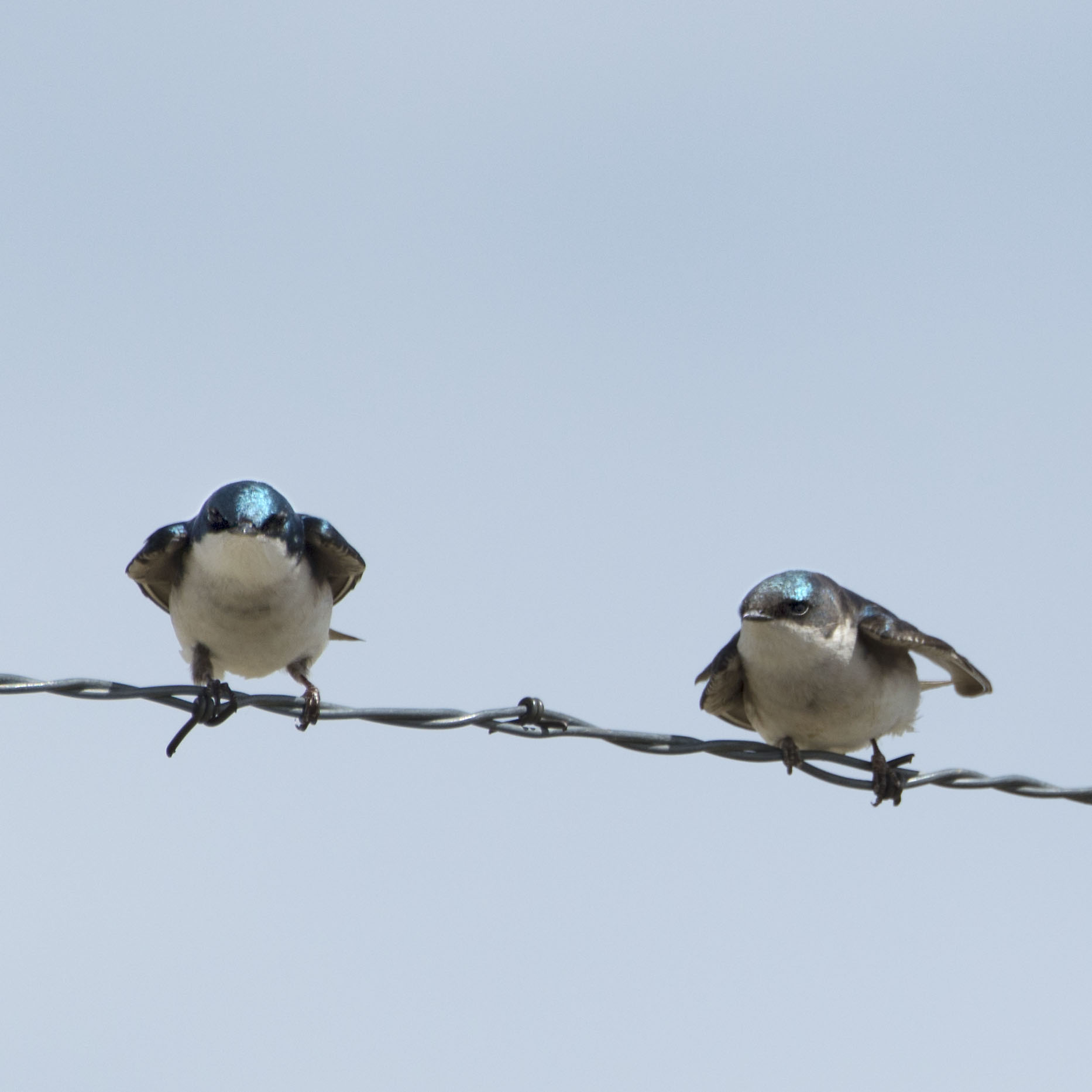 With a huge tailwind it sure appeared this little Tree Swallow was coming in a bit hot to make this landing on the barbed wire fence.