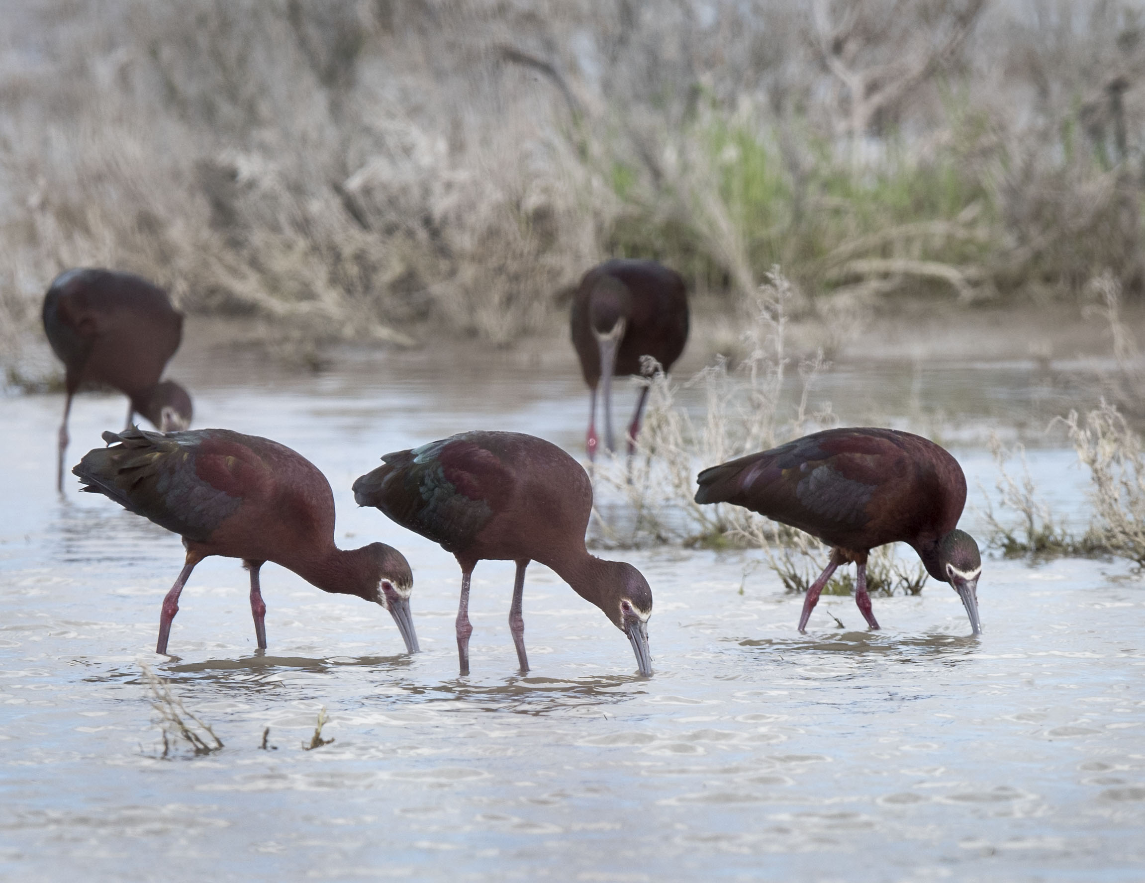 White faced Ibis foraging in shallow ponds at Bear River National Wildlife Refuge.