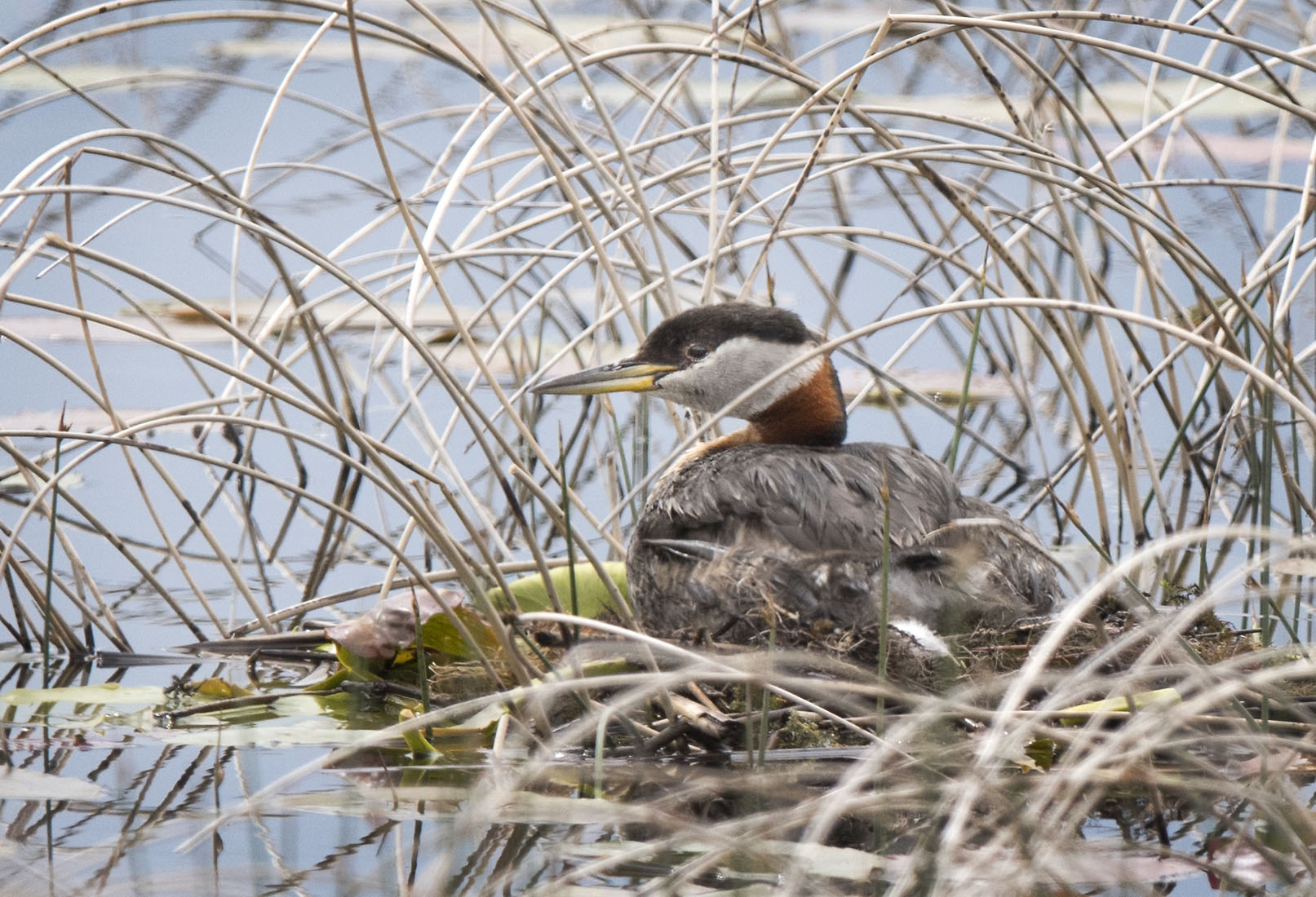 It is always a treat to see a red-necked grebe, and one on a nest is extraordinary. Thanks for sharing this peek, Mike.