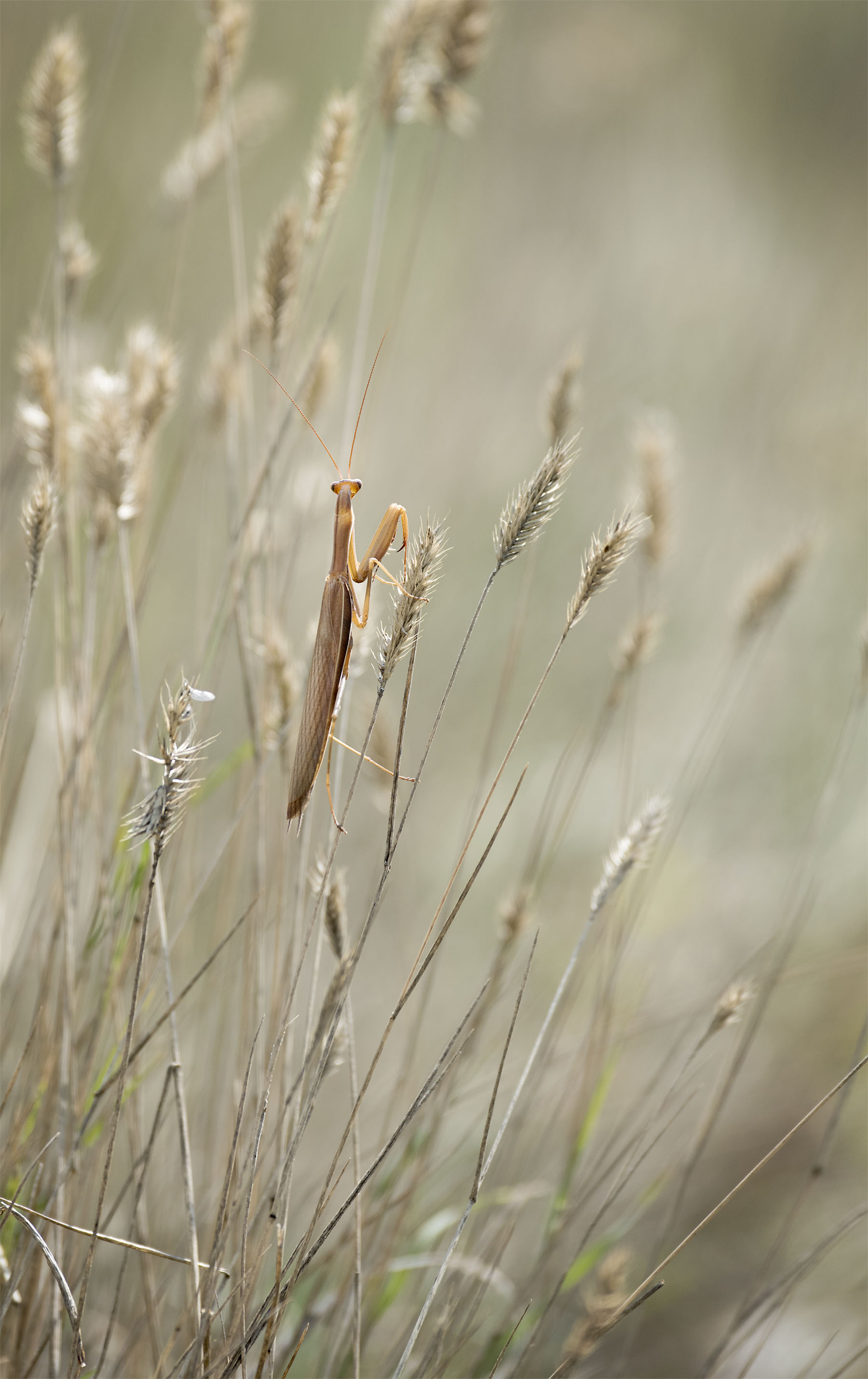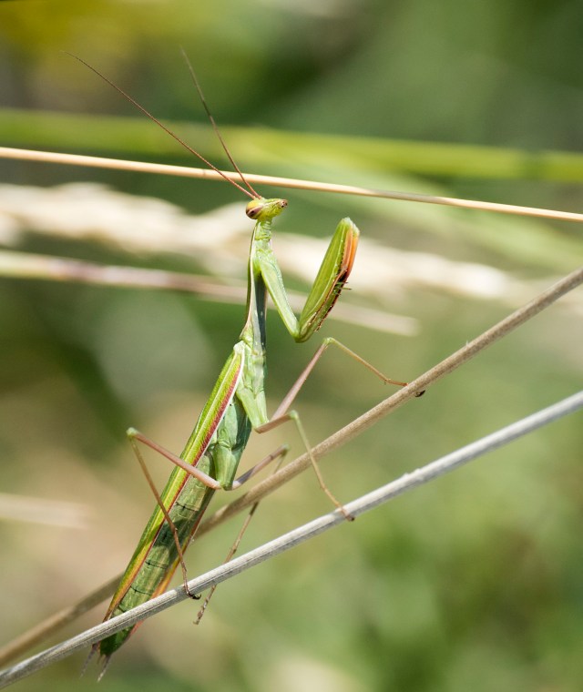 We typically see only a few Preying Mantis each summer either while out hiking or in our garden. Last week, while out on a hike, we saw numerous Mantids and each one matched the specific grasses they resided in. The Mantid above was in grasses that were a mix of green and brown and the Mantid was green and brown.