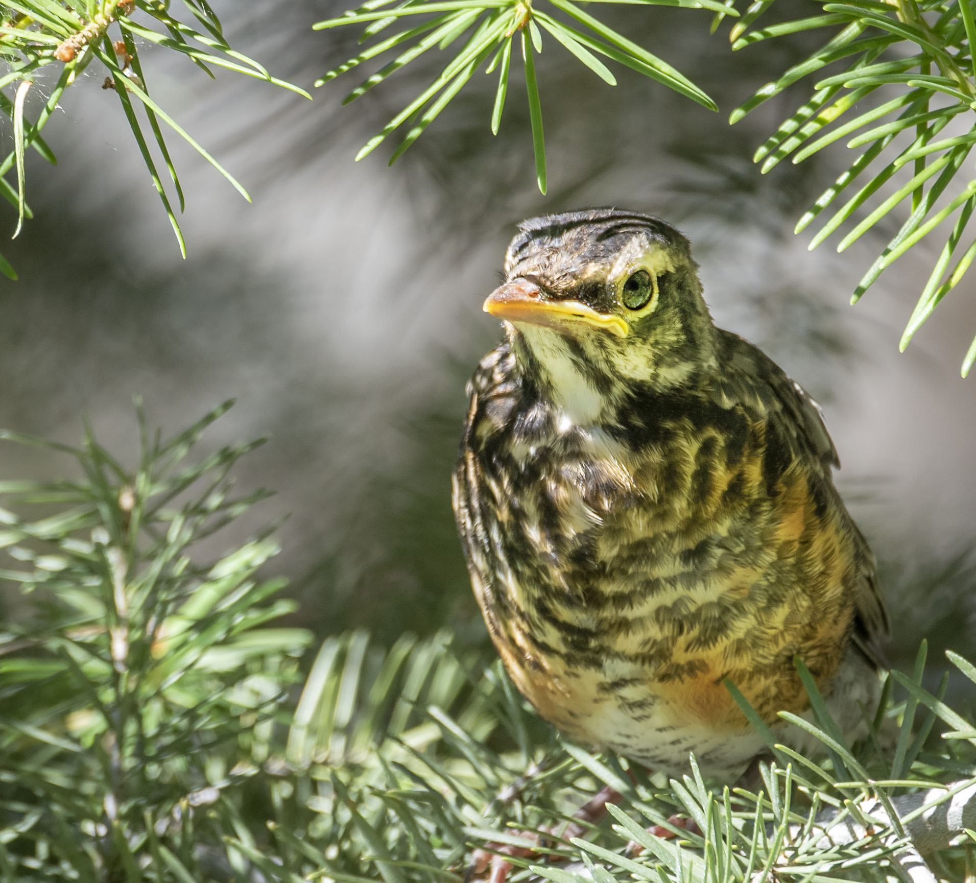 While without a doubt we heard the distinctive call of an American Robin coming from this spruce what we saw was a little less distinct yet easy to identify.