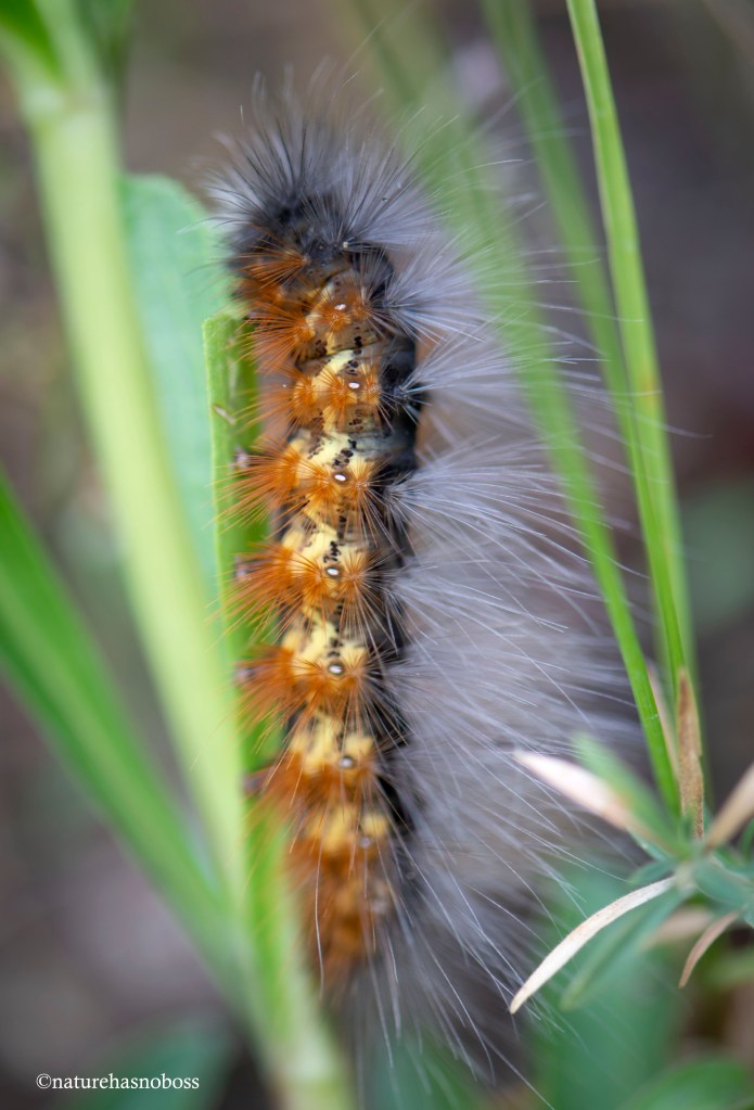 Caterpillars seemed so common in my youth but even while out and about most every day their numbers seem small. Perhaps it’s our location but maybe not. We were excited to find two species inching along on a late fall day. Both similar yet very distinct.