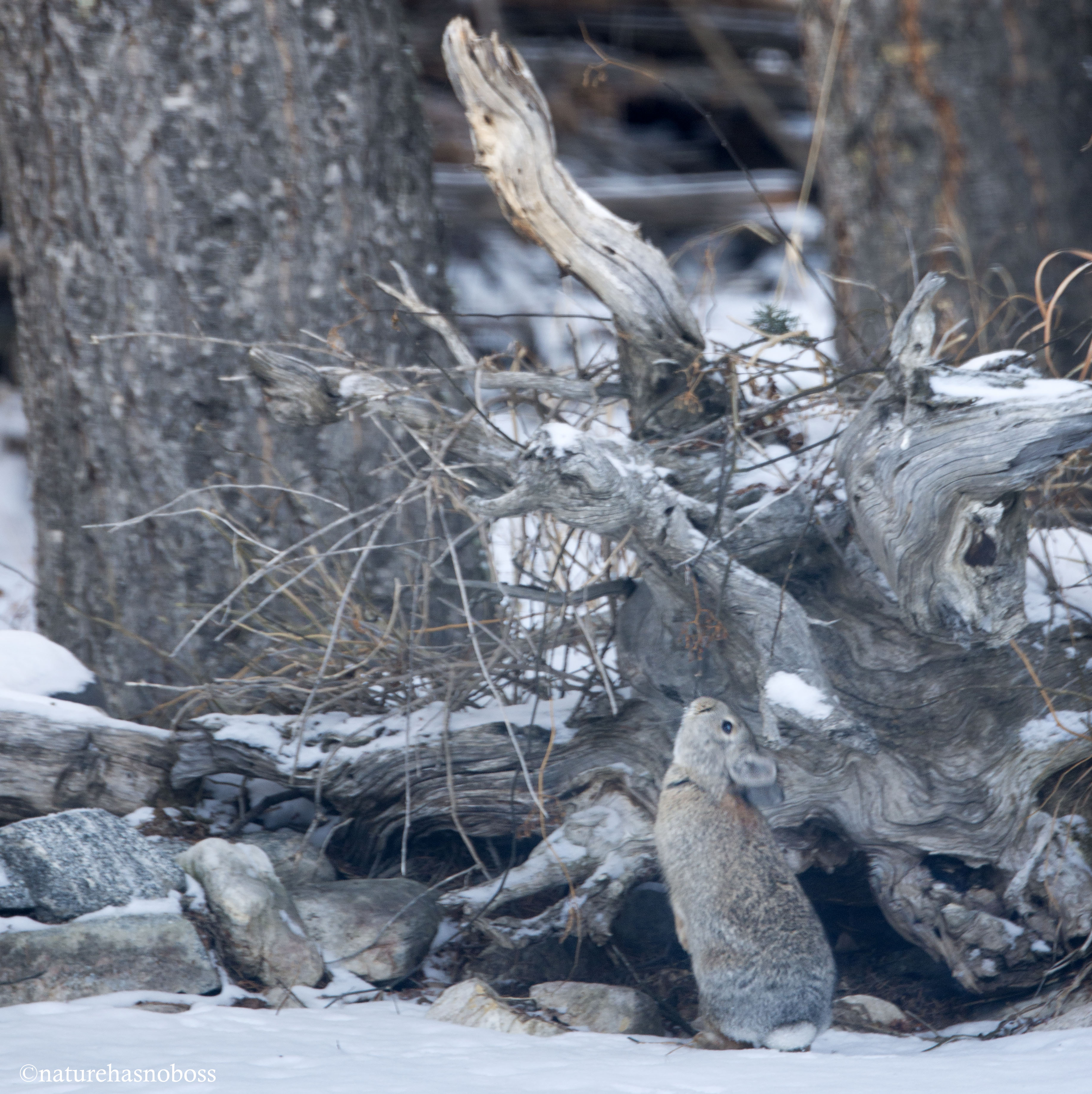 One of our favorite companions reaching for just a nibble of long dried out bitter nightshade berries. We are glad to have Bunn around and thankfully avoiding the predators as winter moves along.