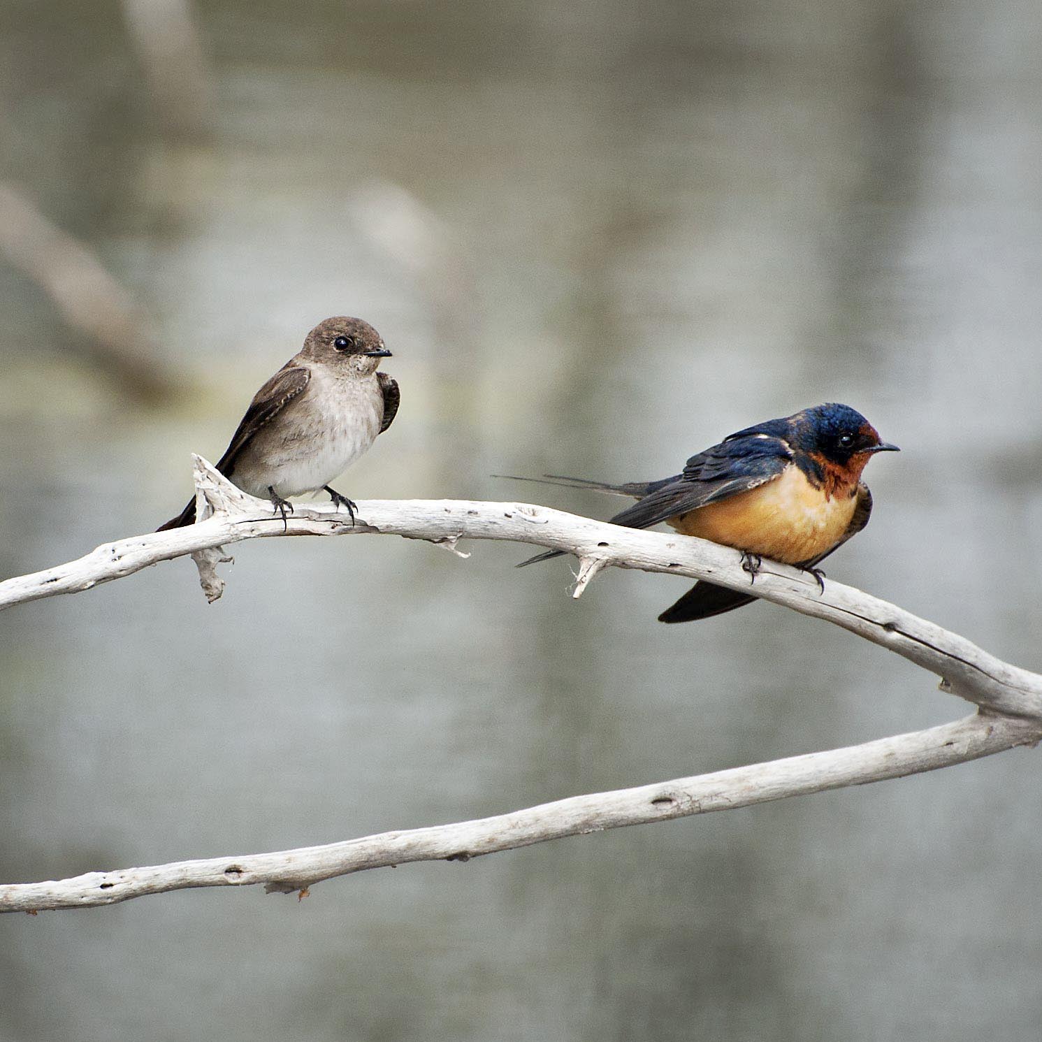 At rest On March 28, 2021March 14, 2021 By Mike and Christy A Northern Rough Winged Swallow settles down next to a Barn Swallow for a much needed rest after buzzing about trying to catch some early season insects hatching on a small pond. Share this: Click to share on X (Opens in new window) X Click to share on Facebook (Opens in new window) Facebook Click to email a link to a friend (Opens in new window) Email Click to share on Pinterest (Opens in new window) Pinterest Click to share on Tumblr (Opens in new window) Tumblr More Click to print (Opens in new window) Print Like Loading...