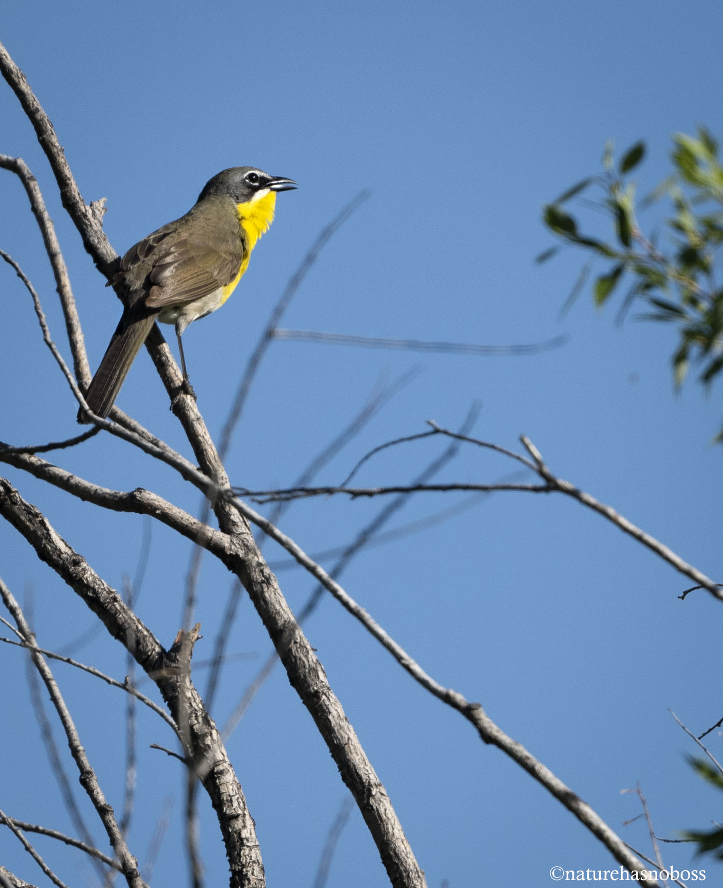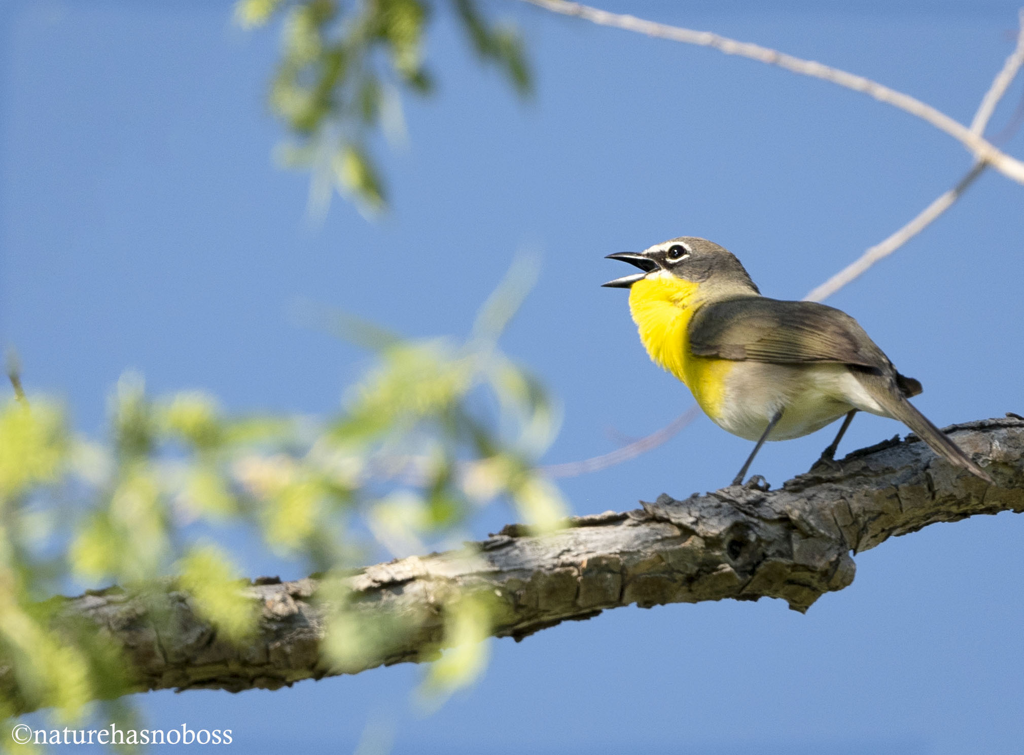 There is a unique pleasure associated with spending a night camping next to the homes of a couple a male Yellow-breasted Chats during the spring courting season. Prolific singers in early morning and evening light but it was the all night singing during the breeding season that made for a memorable experience.