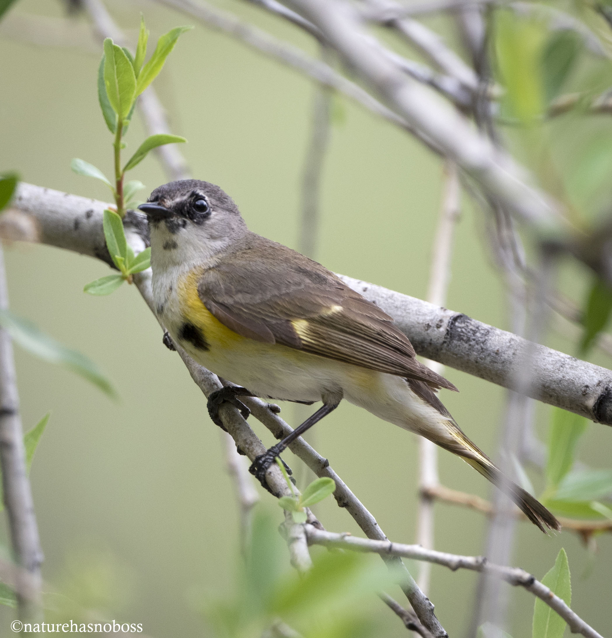 On the opposite side of a field in which we were watching two coyotes prowling we heard the singing of the American Redstart. It had been quite some time since we have seen this unique little black and red warbler so we skedadled over to a thick stand of willows where thought the singing was coming from.