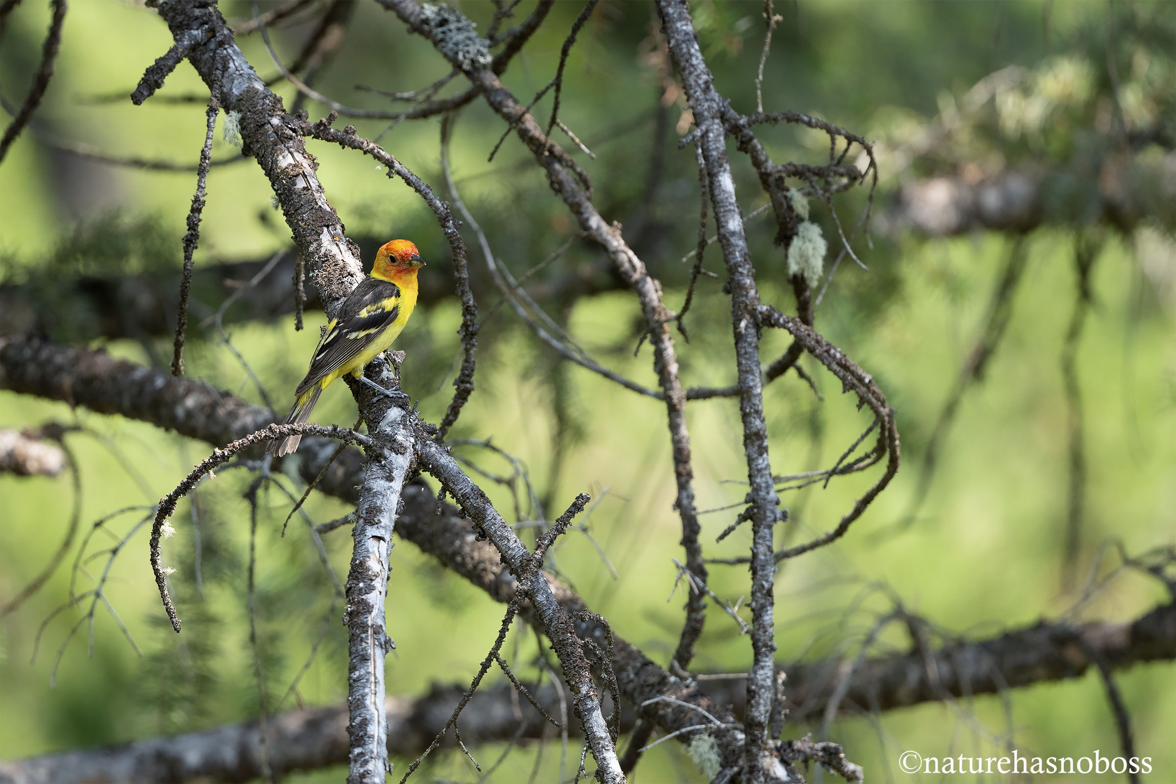 It’s a been a summer filled with smoky skies and when the sun was out it seemed dulled and lacking that cheery-summery feeling. However, even when skies were hazy and the sunlight dimmed, there were always male Western Tanagers to illuminate the haze filled skies .