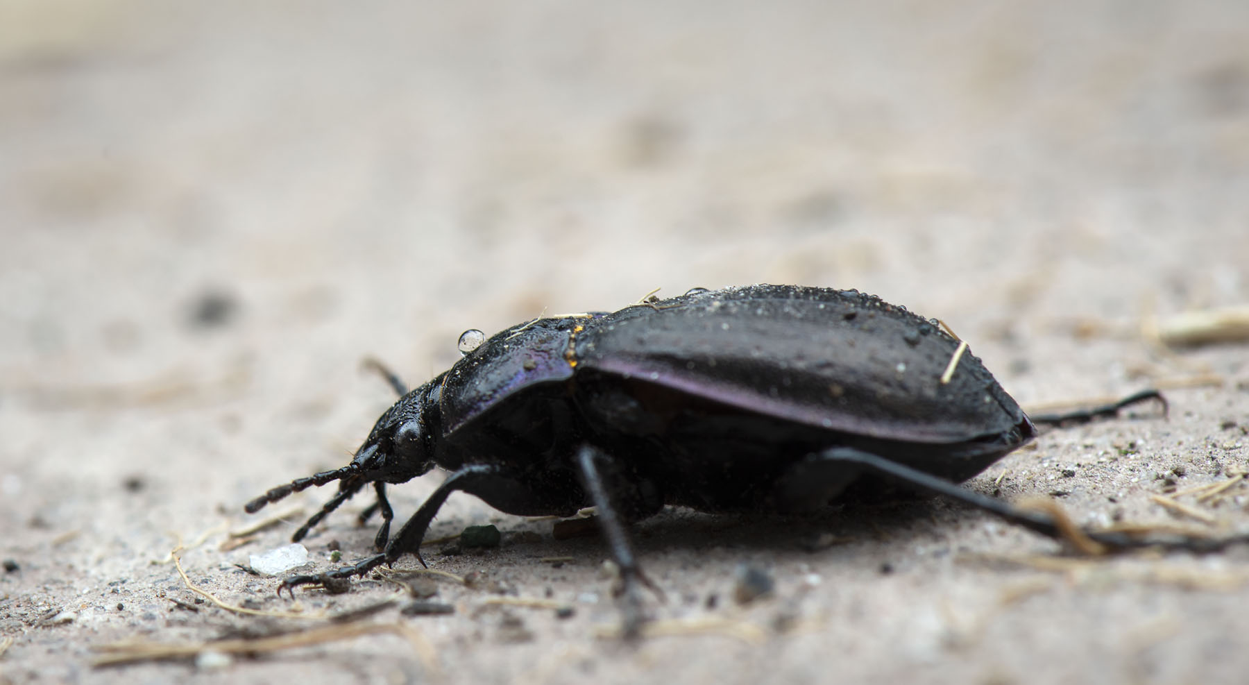 “Oil beetles have fascinating life-cycles. The larvae are parasites of a number of species of ground-nesting solitary bee. Towards the end of spring, female oil beetles dig burrows in the ground close to colonies of host bees, into which they lay around 1000 eggs. These eggs usually hatch the following year in order to coincide with the emergence of the bees. The oil beetle larvae (known as tringulins) are very active, and climb up onto flowers where they wait for a host bee. They attach themselves to the bee, and if they are lucky and attach to the right type of species they will be flown to the host’s burrow, where the tringulin oil beetle turns into a grub-like larva, and develops, feeding upon the pollen stores and eggs of the host. The larva pupates and the resulting adult beetle spends the winter inside the host’s burrow before emerging the following spring.”
