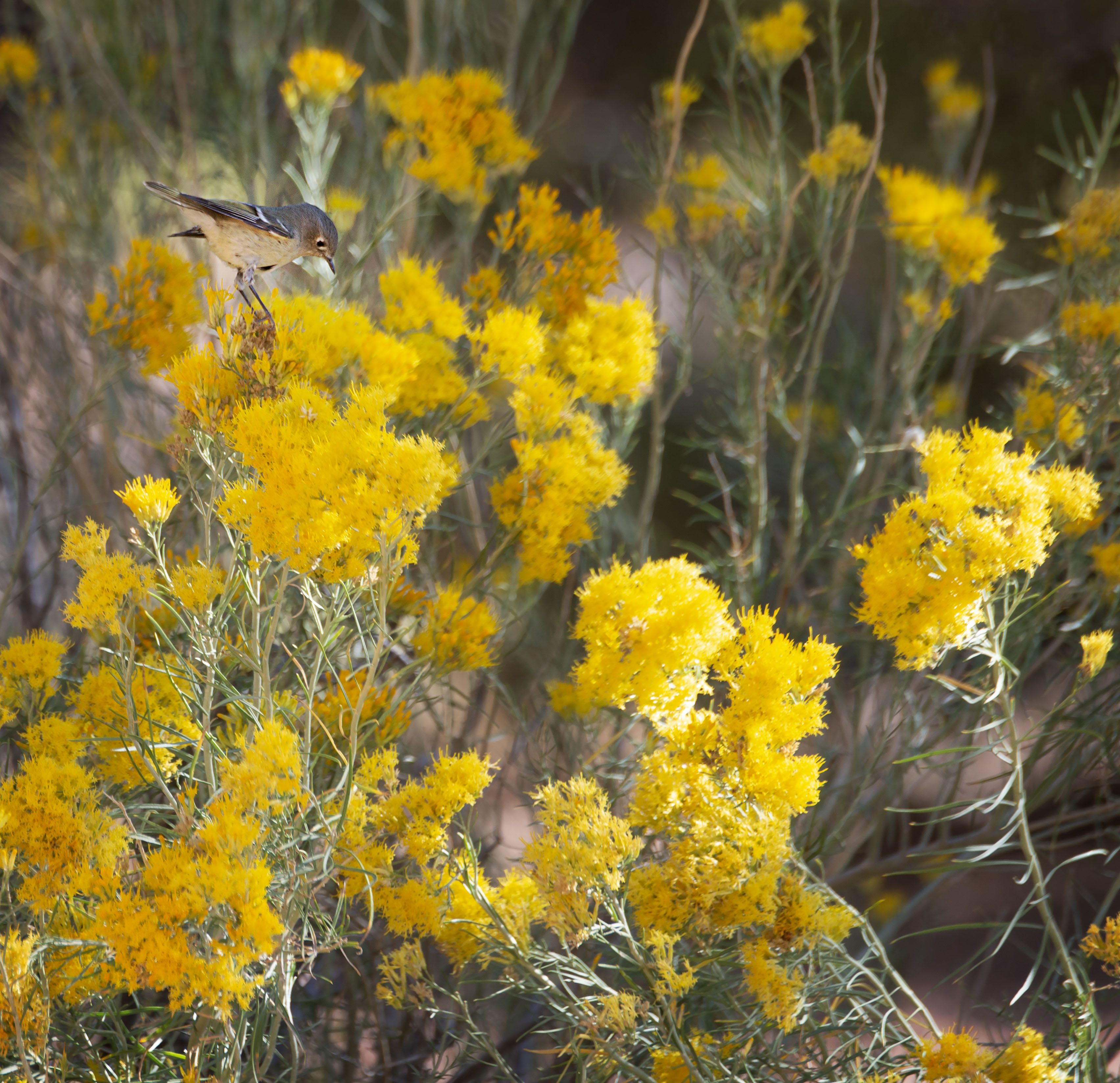 Just a few weeks ago the Rabbit Brush was in full bloom and hosting quite a party where everyone was invited. Rabbit Brush is a native plant found over much of the western United States that blooms in late fall providing one final burst of color before winter arrives. According to the USDA, Rabbit Brush:Chrysothamnus viscidiflorus, provides both nesting habitat and forage for a wide variety of birds, insects and small mammals. One of the more frequent visitors to the party were White Crowned Sparrows.