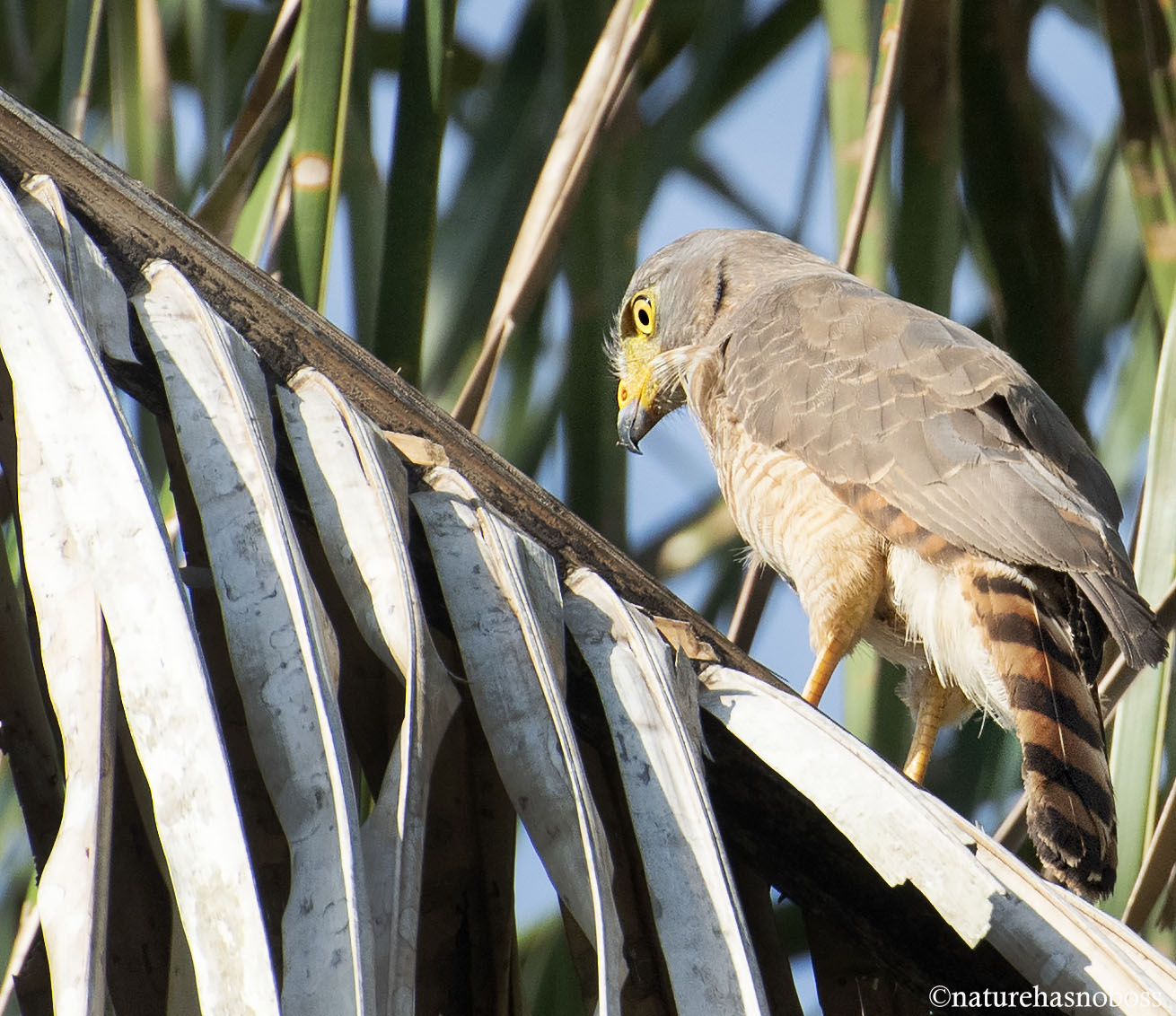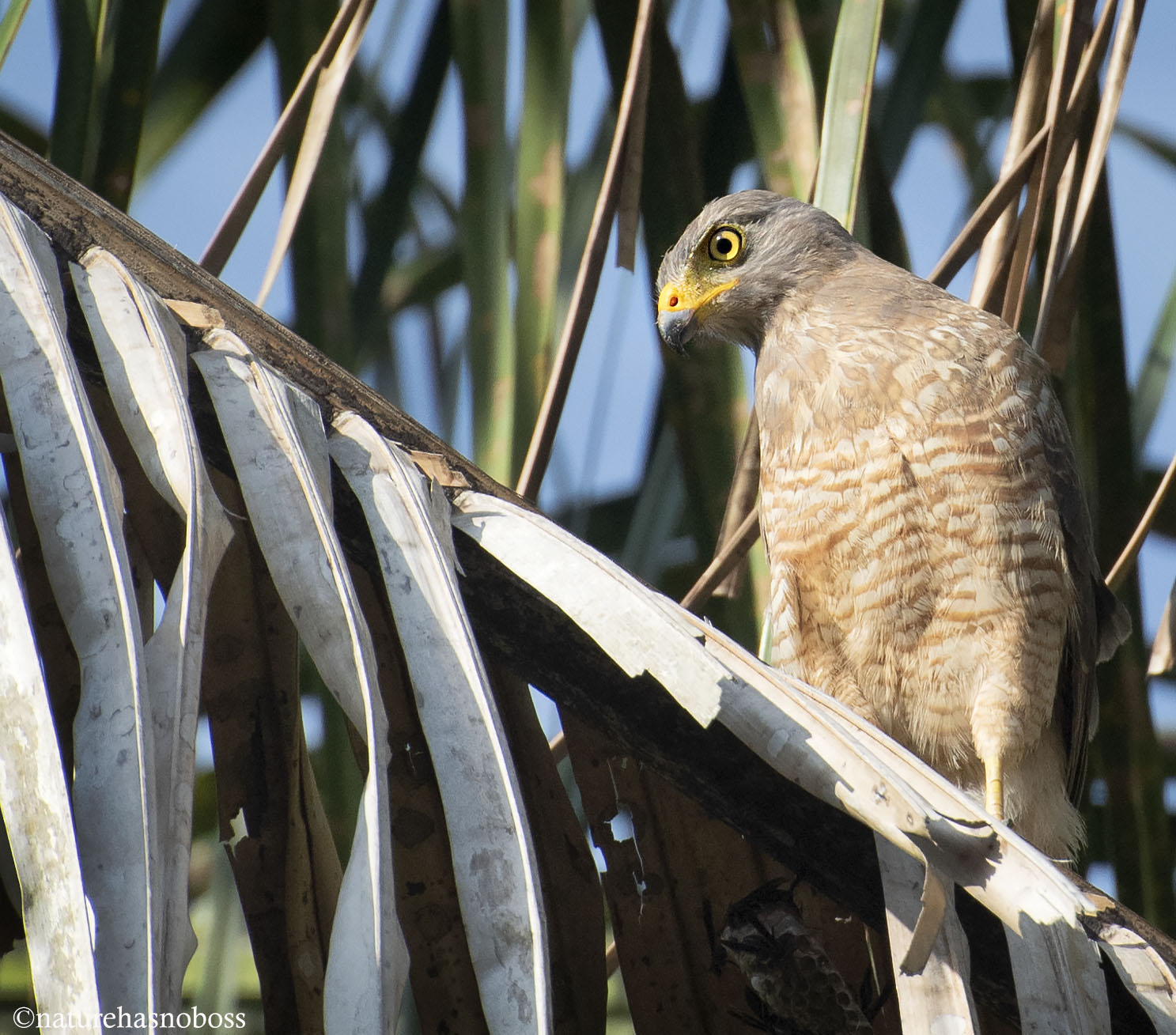 Reference:Bierregaard, R. O., P. F. D. Boesman, and G. M. Kirwan (2020). Roadside Hawk (Rupornis magnirostris), version 1.0. In Birds of the World (J. del Hoyo, A. Elliott, J. Sargatal, D. A. Christie, and E. de Juana, Editors). Cornell Lab of Ornithology, Ithaca, NY, USA. https://doi.org/10.2173/bow.roahaw.01