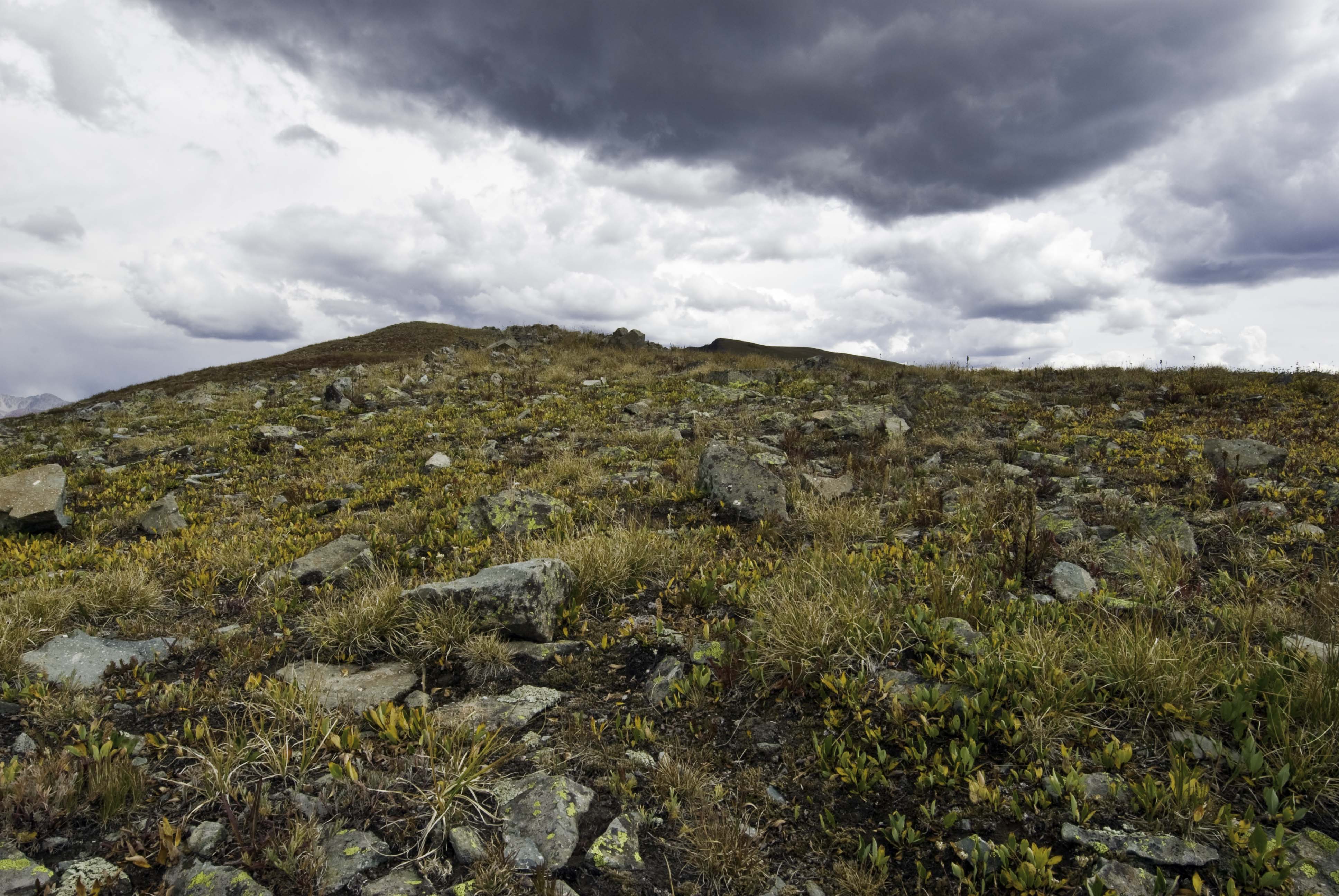 With a snow storm moving in beautiful colors pop from the rocks and trees near Lizard Head Pass, Colorado.