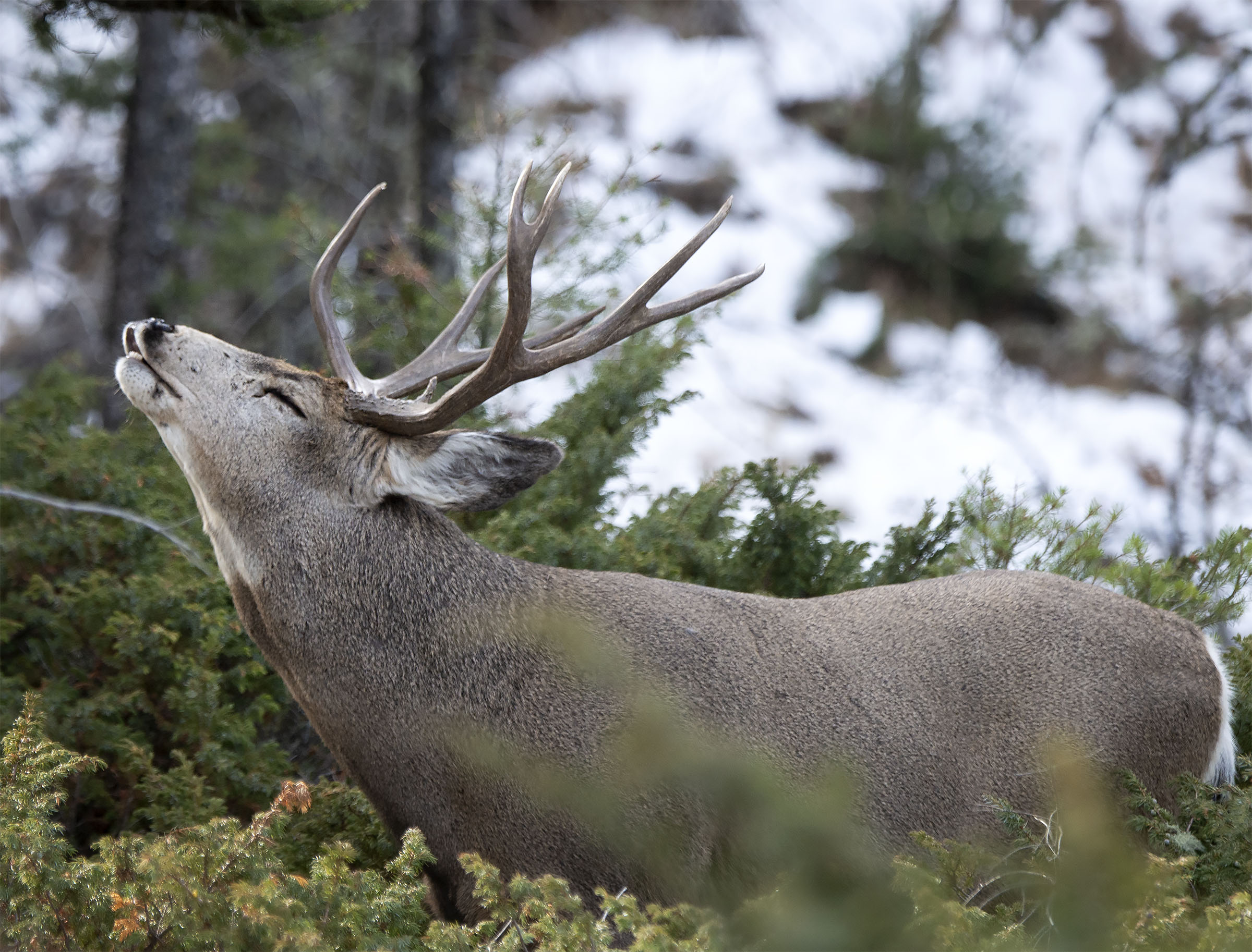 This Mule Deer was hanging out eyeing a couple other males with much larger racks off across the way perhaps dreaming of joining them.