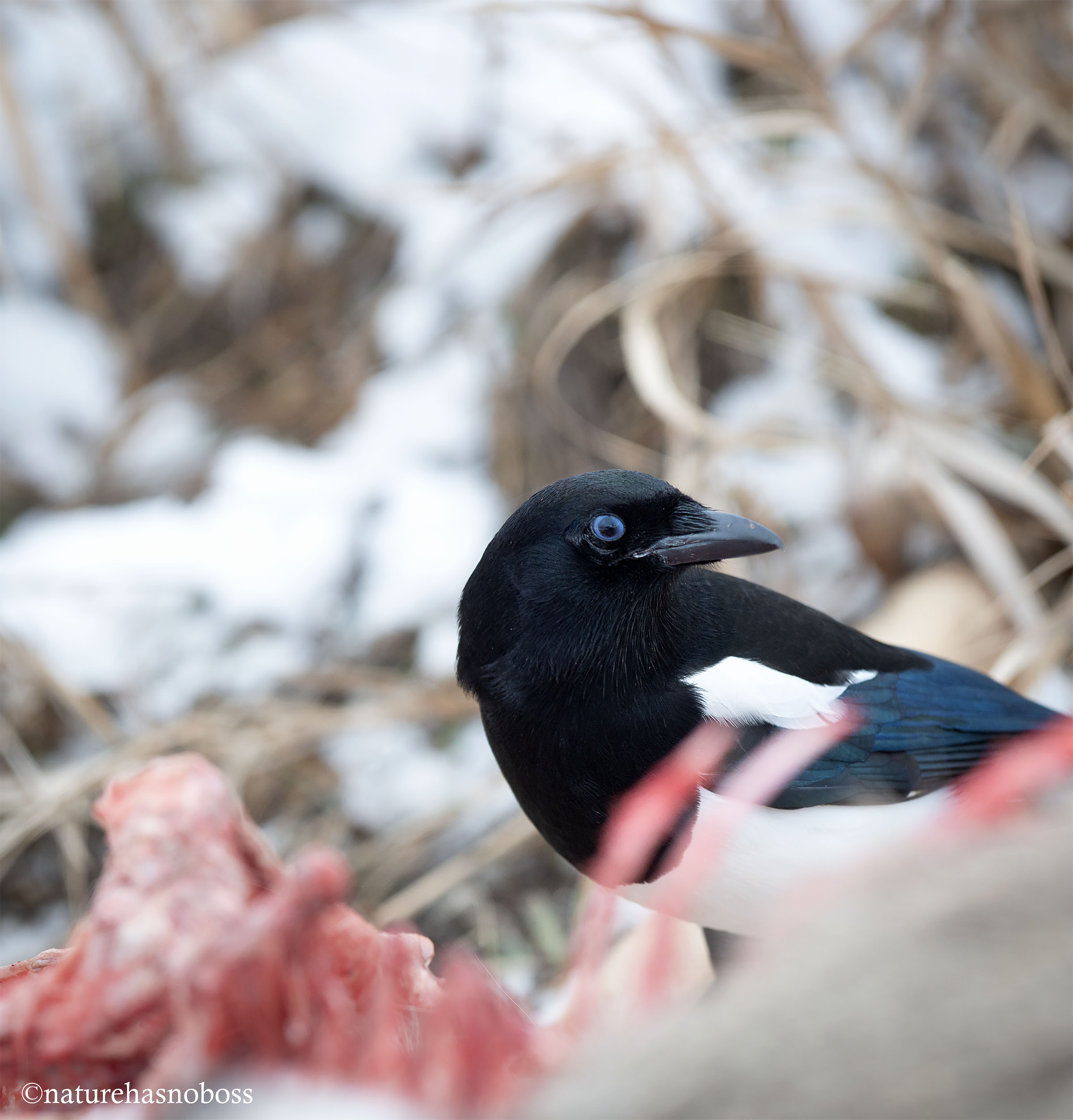 We seldom see the blue in the eyes of magpies but this day was an excepting.