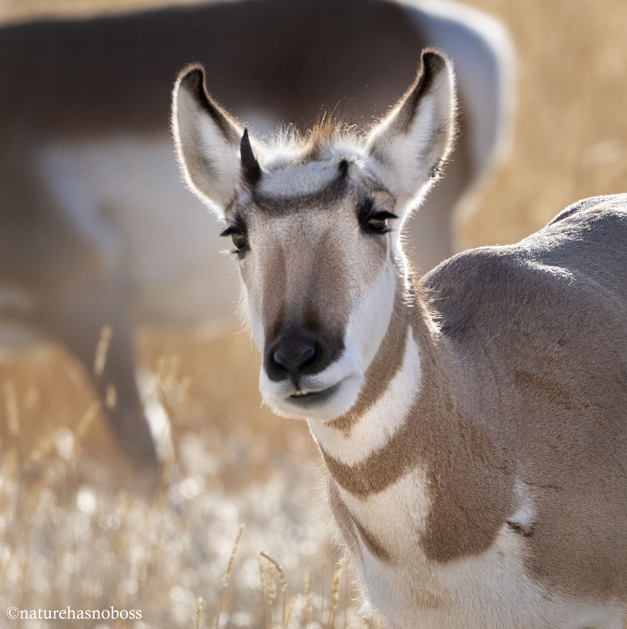 On a recent drive through grasslands close to home we encountered a nice sized herd of Pronghorn enjoying the morning sun. Looking at them looking back at us you could just feel their different expressions whispering a bit of that Pronghorn personality.