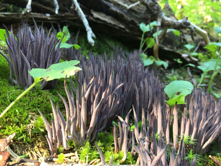 A wonderful and unusual fungus growing like fingers from the earth along the path of old tree decomposing lying just below the earths surface.